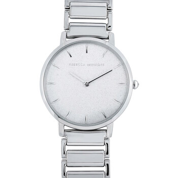 Stainless steel case with a stainless steel bracelet. Fixed stainless steel bezel. Silver dial with silver-tone hands and index hour markers. Dial Type: Analog. Quartz movement. Scratch resistant mineral crystal. Pull / push crown. Solid case back. Round case shape. Case size: 35 mm. Case thickness: 66.2 mm. Band width: 16 mm. Jewelry clasp. Water resistant at 30 meters / 100 feet. Functions: hour, minute. Major Series. Luxury watch style. Rebecca Minkoff Major Quartz Silver Dial Ladies Watch 2200258.