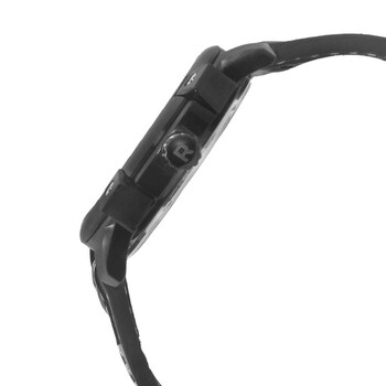 Black stainless steel case with a black leather strap. Fixed black stainless steel bezel. Black dial with black hands and index hour markers. Minute markers around the outer rim. Dial Type: Analog. One - 60 seconds subdial. Quartz movement. Scratch resistant mineral crystal. Push/pull crown. Solid case back. Round case shape, case size: 46 mm, case thickness: 11 mm. Band width: 22 mm, band length: 8.5 inches. Tang clasp. Water resistant at 100 meters / 330 feet. Functions: hour, minute, second. Casual watch style. Rebel Weeksville Black Dial Men's Watch RB121-6071.