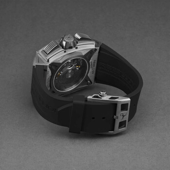 Silver-tone titanium case with a black rubber strap. Fixed silver-tone titanium bezel. Black dial with black hands and index hour markers. Minute markers around the outer rim. Dial Type: Analog. Luminescent hands and markers. Date display between 4 and 5 o'clock position. Chronograph - three sub-dials displaying: 60 second, 30 minute and 12 hour. Automatic movement. Scratch resistant sapphire crystal. Pull / push crown. Solid case back. Square case shape, case size: 42 mm, case thickness: 19 mm. Band width: 34 mm. Deployment with push button release clasp. Water resistant at 50 meters / 165 feet. Functions: chronograph, date, hour, minute, second. Re1 2.0 Series. Luxury watch style. Watch label: Swiss Made. Rebellion Re1 2.0 Chronograph Automatic Black Dial Men's Watch RB.RE12.CH.TI.GR.