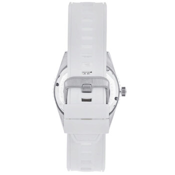 Band Color: White Rubber; Band Width: 22mm near case; 22mm near clasp/buckle; Bezel Color: Black; Case: Silver + Circle-Shaped; Case Finish: Brushed + Stainless Steel; Case Thickness: 14mm; Case Width: 42mm; 45mm with Crown; Clasp / Buckle: Strap Buckle; Dial: Navy + Analog; Hand Color: Silver; Movement: Japanese + Automatic; Time Zones: Single; Water Resistance: 10 ATM.