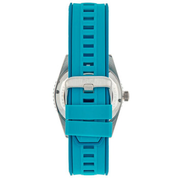 Band Color: Blue Rubber; Band Width: 22mm near case; 22mm near clasp/buckle; Bezel Color: Black; Case: Silver + Circle-Shaped; Case Finish: Brushed + Stainless Steel; Case Thickness: 14mm; Case Width: 42mm; 45mm with Crown; Clasp / Buckle: Strap Buckle; Dial: Blue + Analog; Hand Color: Silver; Movement: Japanese + Automatic; Time Zones: Single; Water Resistance: 10 ATM.