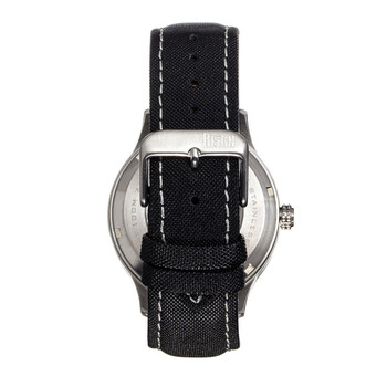 Stainless steel case with a black leather strap. Fixed stainless steel bezel. Black dial with luminous silver-tone hands and dot hour markers. Minute markers around the outer rim. Dial Type: Analog. Luminescent hands and markers. Date display at the 3 o'clock position. Automatic movement. Scratch resistant mineral crystal. Pull / push crown. Transparent case back. Round case shape. Case size: 43 mm. Case thickness: 14 mm. Band width: 22 mm. Band length: 8.45 inches. Tang clasp. Water resistant at 100 meters / 330 feet. Functions: date, hour, minute, second. Henry Series. Casual watch style. Watch label: Japan Movt. Reign Henry Automatic Black Dial Men's Watch REIRN6202.
