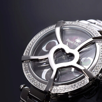Coeur d'Amour by Rene Mouris is inspired by love and passion. This elegant and charming timepiece has a pink, white or black mother-of-pearl dial decorated with a motif of hearts. Premium crystals can be found edging the heart on some models, and also looping round the bezel. Stainless steel case with a stainless steel bracelet. Fixed stainless steel bezel set with crystals. Mother of pearl (heart motif) dial with silver-tone hands. Stylized arabic numerals at the 3, 6 and 9 o'clock positions. Dial Type: Analog. Quartz movement. Scratch resistant mineral crystal. Pull / push crown. Solid case back. Round case shape. Case size: 38 mm. Case thickness: 12 mm. Band width: 18 mm. Band length: 6.5 inches. Deployment clasp with a push button release. Water resistant at 50 meters / 165 feet. Functions: hour, minute, second. Coeur D'amour Series. Fashion watch style. Rene Mouris Coeur DAmour Mother of Pearl Dial Ladies Watch 50103RM3.