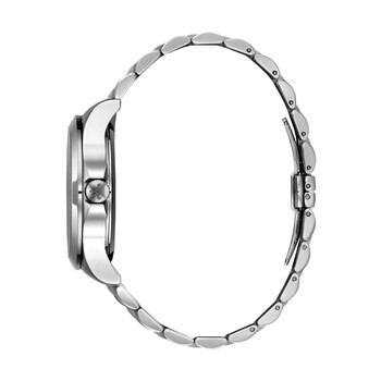 Silver-tone stainless steel case and bracelet. Fixed silver-tone stainless steel bezel. Brown dial with silver-tone hands and Arabic numeral & index hour markers. Minute scale around the inner rim. Dial Type: Analog. Luminescent hands and markers. Date display at the 3 o'clock position. 24 hour subdials. Automatic movement. Scratch resistant mineral crystal. Pull / push crown. Transparent case back. Round case shape, case size: 44 mm, case thickness: 13 mm. Band width: 22 mm, band length: 7.87 inches. Deployment with push button release clasp. Water resistant at 100 meters / 330 feet. Functions: hour, minute, second, power reserve. Cygnus Series. Dress watch style. Rene Mouris Cygnus Automatic Brown Dial Men's Watch 70104RM3.