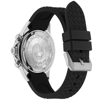 The Dream I is inspired by dream catchers, Native American inventions created to deflect bad dreams. This has been translated through a patterned dial that pays homage to the dream catchers’ strings and round mother-of-pearl sub dials. This collection has been expertly crafted from the highest-grade stainless steel and decorated the bezel with a ceramic ring. Stainless steel case with a black silicone strap. Fixed stainless steel bezel with a black ceramic ring. Beige dial with silver-tone hands and index hour markers. A Roman numeral appears at the 12 o'clock position. Dial Type: Analog. Luminescent hands. Date display between the 4 and 5 o'clock positions. Chronograph - three black sub-dials displaying: 24 hour, 60 minute, 60 second. Quartz movement. Scratch resistant mineral crystal. Pull / push crown. Solid case back. Round case shape. Cse size: 38 mm. Case thickness: 11 mm. Band width: 18 mm. Tang clasp. Water resistant at 50 meters / 165 feet. Functions: chronograph, date, hour, minute, second, sport, water resistant. Additional Info: mother of pearl sub-dial. Dream I Series. Sport watch style. Watch label: French Made. Rene Mouris Dream I Chronograph Beige Dial Ladies Watch 50108RM2.