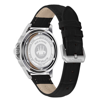 The design inspiration of "La Fleur" comes from a bouquet of flowers. This is collection represents Romance, pure love and Happiness. A combination of colour-plated highest grade metal bracelets, genuine leather straps and highest quality silicone straps feature on this collection. Silver-tone stainless steel case with a black leather strap. Fixed silver-tone stainless steel bezel. Mother of pearl dial with silver-tone hands and Arabic numeral & index hour markers. Dial Type: Analog. Luminescent hands. Quartz movement. Scratch resistant mineral crystal. Pull / push crown. Solid case back. Round case shape, case size: 38 mm, case thickness: 11 mm. Band width: 18 mm, band length: 8 inches. Buckle clasp. Water resistant at 50 meters / 165 feet. Functions: hour, minute, second. Additional Info: 108 pieces of crystal on bezel. La Fleur Series. Casual watch style. Rene Mouris LA FLEUR Mother of Pearl Dial Ladies Watch 50104RM1.