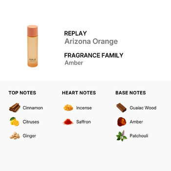 Belonging to the Amber fragrance family, Arizona Orange opens with an energizing blend of cinnamon, fresh citruses, and zingy ginger. These top notes create an instant spark that awakens the senses. As the scent unfolds, rich heart notes of incense and luxurious saffron add depth and mystery, creating a warm and inviting aura. Finally, a rich base of guaiac wood, amber, and patchouli wraps the fragrance in a smooth, earthy finish that lingers beautifully.