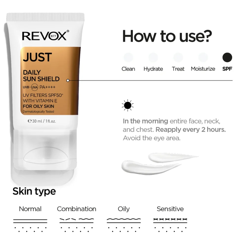 Revox B77 Just მზისგან დამცავი ცხიმიანი კანისთვის SPF 50+ 30 მლ