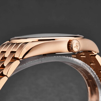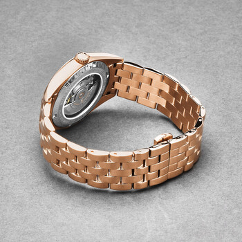 Rose gold-tone stainless steel case and bracelet. Fixed rose gold-tone bezel. Grey dial with luminous rose gold-tone hands and index hour markers. Minute markers around the outer rim. Dial Type: Analog. Automatic movement. Scratch resistant sapphire crystal. Pull / push crown. Transparent see through case back. Round case shape. Case size: 39 mm. Case thickness: 10 mm. Band width: 18 mm. Band length: 8 inches. Deployment with push button release clasp. Water resistant at 50 meters / 165 feet. Functions: hour, minute, second. Heritage Series. Luxury watch style. Watch label: Swiss Made. Revue Thommen Heritage Automatic Grey Dial Men's Watch 21010.2162.