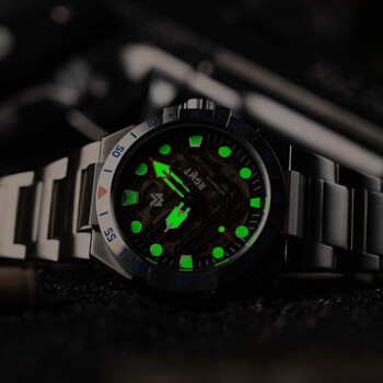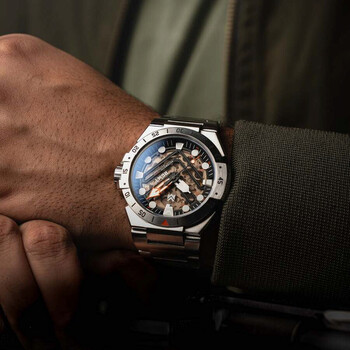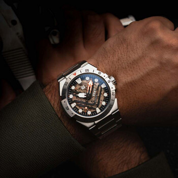 Designed with a nod to military engineering, this is a timepiece that embodies the precision and power of its namesake—the M142 High Mobility Artillery Rocket System. Built for those who demand excellence in both performance and aesthetics, this watch is a testament to innovative engineering and tactical design. Silver-tone stainless steel case and bracelet. Fixed silver-tone stainless steel bezel. Black dial with silver-tone hands and index hour markers. Minute markers around the outer rim. Dial Type: Analog. Luminescent hands and markers. Seiko - NH70 automatic movement. Scratch resistant sapphire crystal. Pull / push crown. Solid case back. Round case shape, case size: 47 mm, case thickness: 12 mm. Band width: 29 mm, band length: 8 inches. Fold over clasp. Water resistant at 100 meters / 330 feet. Functions: hour, minute, second. Himars Series. Casual watch style. RGMT Himars Black Dial Men's Watch RG-8063-11.
