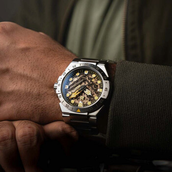 Designed with a nod to military engineering, this is a timepiece that embodies the precision and power of its namesake—the M142 High Mobility Artillery Rocket System. Built for those who demand excellence in both performance and aesthetics, this watch is a testament to innovative engineering and tactical design. Silver-tone stainless steel case and bracelet. Fixed silver-tone stainless steel bezel. Brown dial with silver-tone hands and index hour markers. Minute markers around the outer rim. Dial Type: Analog. Luminescent hands and markers. Seiko - NH70 automatic movement. Scratch resistant sapphire crystal. Pull / push crown. Solid case back. Round case shape, case size: 47 mm, case thickness: 12 mm. Band width: 29 mm, band length: 8 inches. Fold over clasp. Water resistant at 100 meters / 330 feet. Functions: hour, minute, second. Himars Series. Casual watch style. RGMT Himars Brown Dial Men's Watch RG-8063-33.