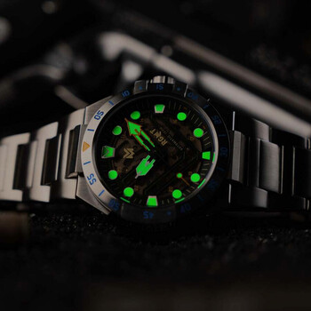 Designed with a nod to military engineering, this is a timepiece that embodies the precision and power of its namesake—the M142 High Mobility Artillery Rocket System. Built for those who demand excellence in both performance and aesthetics, this watch is a testament to innovative engineering and tactical design. Silver-tone stainless steel case and bracelet. Fixed silver-tone stainless steel bezel. Green dial with silver-tone hands and index hour markers. Minute markers around the outer rim. Dial Type: Analog. Luminescent hands and markers. Seiko - NH70 automatic movement. Scratch resistant sapphire crystal. Pull / push crown. Solid case back. Round case shape, case size: 47 mm, case thickness: 12 mm. Band width: 29 mm, band length: 8 inches. Fold over clasp. Water resistant at 100 meters / 330 feet. Functions: hour, minute, second. Himars Series. Casual watch style. RGMT Himars Green Dial Men's Watch RG-8063-22.