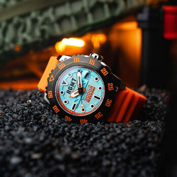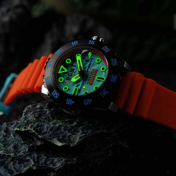 The Ohio Automatic takes its name from the awe-inspiring might and resilience of the US Navy’s OHIO class nuclear-powered ballistic submarines, and are the largest submarines ever to serve the Navy.From cutting-edge marine-grade engineering to ample luminosity, and a scratch-resistant sapphire lens - the watch is truly a feat of watchmaking designed to test the limits. Silver-tone stainless steel case and bracelet. Uni-directional rotating black stainless steel bezel. Blue dial with silver-tone hands and Arabic numeral & index hour markers. Minute markers around the outer rim. Dial Type: Analog. Luminescent hands and markers. Date display at the 3 o'clock position. Seiko - NH35 automatic movement. Scratch resistant sapphire crystal. Screw down crown. Solid case back. Round case shape, case size: 45 mm, case thickness: 13 mm. Band width: 24 mm, band length: 8 inches. Fold over clasp. Water resistant at 3000 meters / 10000 feet. Functions: date, hour, minute, second. Ohio Series. Dive watch style. RGMT Ohio Blue Dial Men's Watch RG-8034-0G.