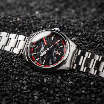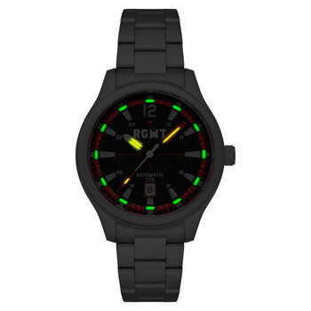 The Tritium Automatic collection is designed for optimal performance and reliability with its Japanese automatic movement, stainless steel case, and unique luminous powered by tritium gas, ensuring visibility and accuracy day or night. Built to last, its sturdy build will reliably serve you for years to come. Silver-tone stainless steel case and bracelet. Fixed silver-tone stainless steel bezel. Black dial with black hands and Arabic numeral & index hour markers. Minute markers around the outer rim. Dial Type: Analog. Luminescent hands and markers. Date display at the 6 o'clock position. Miyota Caliber 8215 Automatic movement, containing 21 Jewels, bitting at 21600 vph, and has a power reserve of approximately 42 hours. Scratch resistant mineral crystal. Pull / push crown. Solid case back. Round case shape, case size: 43 mm, case thickness: 14 mm. Band width: 20 mm, band length: 8 inches. Fold over clasp. Water resistant at 10 meters / 33 feet. Functions: date, hour, minute, second. Tritium Series. Casual watch style. Watch label: Japan Movt. RGMT Tritium Black Dial Men's Watch RG-8046-22.