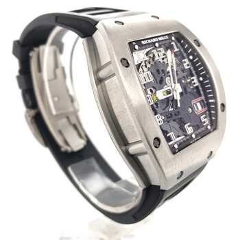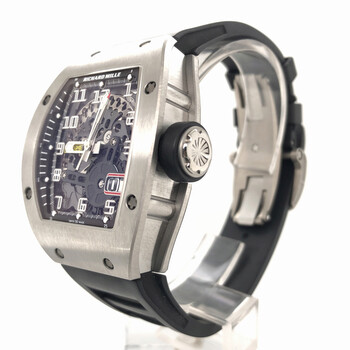 18kt rose gold case with a black rubber strap. Fixed 18kt rose gold bezel. Transparent dial with Arabic numeral hour markers. Dial Type: Analog. Date display at the 4 o'clock position. Richard Mille Calibre RMAS7 automatic movement. Scratch resistant sapphire crystal. Screw down crown. Transparent case back. Tonneau case shape. Case size: 48 x 39.70mm. Deployment clasp. Functions: date, hour, minute, second. Additional Info: original box, international warranty card, manual (complete accessories). Sport watch style. Watch label: Swiss Made. Richard Mille RM029 Automatic Unisex Watch RM 029.