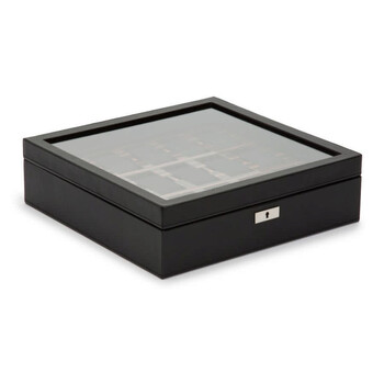 Inspired by the best of British motorcars, Jaguar, Aston Martin, Bristol and the like. Roadster 15 piece watch box wrapped in leather with details of ebony macassar polished wood.