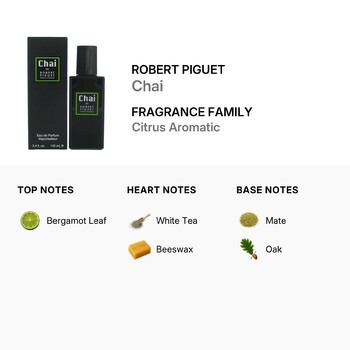 Experience a serene blend of nature and elegance with Robert Piguet Chai Eau de Parfum Spray, a unisex fragrance that redefines sophistication. Crafted by the legendary French niche fragrance house Robert Piguet, Chai was first launched in 2012 and continues to captivate scent lovers with its calming yet uplifting aroma. This 3.4 oz EDP spray is a perfect harmony of citrus freshness and aromatic warmth, ideal for those who appreciate refined simplicity.