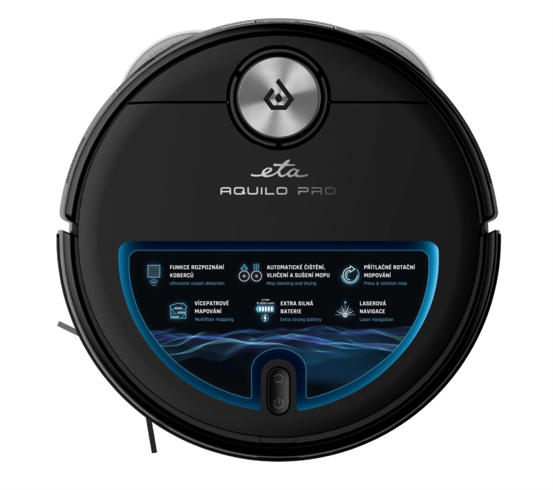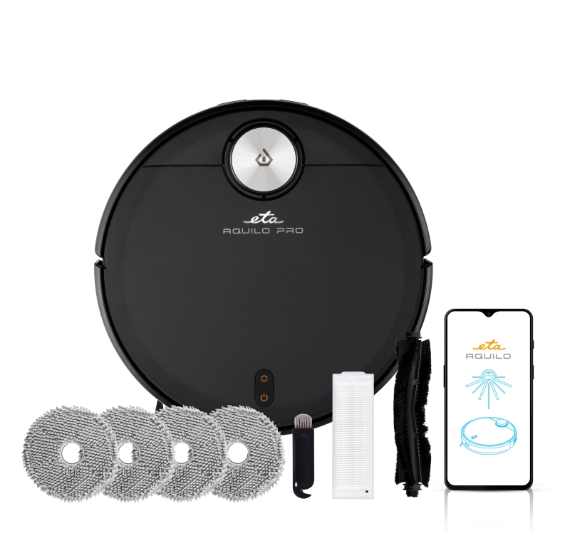ძლიერი და ინტელექტუალური რობოტული მტვერსასრუტი ETA Aquilo Pro 4 in 1 ზრუნავს სახლის სრულ დასუფთავებაზე. მტვერსასრუტი, ასუფთავებს და დეზინფექციას უკეთებს იატაკს UV ნათურის გამოყენებით. თქვენ შეგიძლიათ მიუთითოთ მტვერსასრუტს საწმენდი ადგილები ETA AQUILO აპლიკაციაში, სადაც შეგიძლიათ იპოვოთ მტვერსასრუტის მრავალი სხვა ფუნქცია.