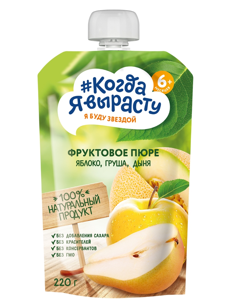 როცა გავიზრდები ხილფაფა ვაშლი, მსხალი & ნესვი 220 გ