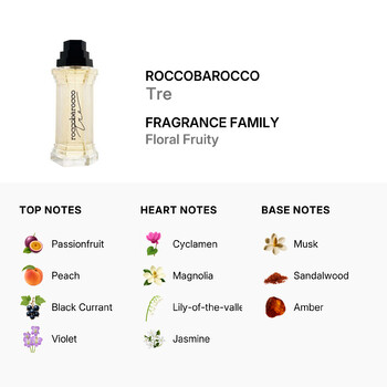 Experience the enchanting allure of Roccobarocco's Tre, a captivating fragrance crafted exclusively for ladies. Launched in 1991, this exquisite scent belongs to the Floral Fruity fragrance family, offering a delightful and timeless aroma. Let the top notes of passionfruit, peach, black currant, and violet whisk you away to a world of refreshing elegance.