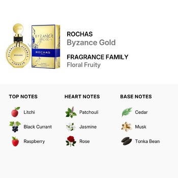 Belonging to the Floral Fruity fragrance family, Byzance Gold opens with a burst of sweet and juicy notes. The top layers sparkle with the vibrant essence of litchi, black currant, and raspberry, creating a fresh, playful start that captures attention. As the scent develops, it unfolds into a heart of patchouli, jasmine, and rose, offering a lush and romantic bouquet that feels both classic and contemporary.
