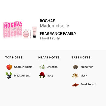 From the very first spritz, Mademoiselle enchants with bright and juicy notes of candied apple and blackcurrant. These sparkling top notes create a fresh and youthful beginning, setting the stage for a heart full of classic beauty. At the core, delicate jasmine and romantic rose petals bloom gently, adding a soft and elegant floral touch that captures the essence of femininity.