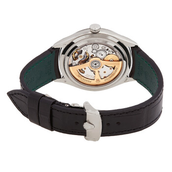18kt white gold case with a black alligator leather strap. Fluted 18kt white gold bezel. Black dial with silver-tone hands and index-Arabic numeral hour markers. Minute markers around the outer rim. Dial Type: Analog. One subdial displaying: small second. Rolex Calibre 7140 automatic movement with a 66-hour power reserve. Scratch resistant sapphire crystal. Domed crown. Transparent case back. Round case shape, case size: 39 mm. Dual clasp. Water resistant at 50 meters / 165 feet. Functions: hour, minute, small second. 1908 Series. Luxury watch style. Watch label: Swiss Made. Item Variations: M52509-0002. Rolex 1908 Automatic Black Dial Men's Watch 52509-0002.