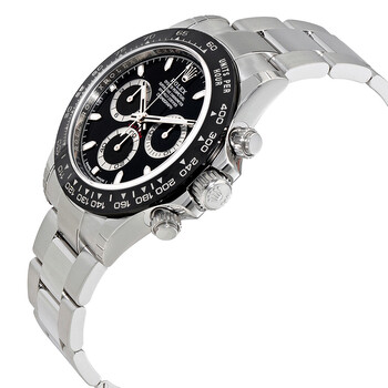 904L stainless steel case with a stainless steel Rolex oyster bracelet. Fixed black cerachrom bezel showing tachymeter markings. Black lacquer dial with luminous silver-tone hands and index hour markers. Minute markers around the outer rim. Dial Type: Analog. Luminescent hands and markers. Chronograph - three sub-dials displaying: 60 second, 30 minute and 12 hour. Rolex calibre 4130 automatic movement with a 72-hour power reserve. Scratch resistant sapphire crystal. Screw down crown. Solid case back. Round case shape. Case size: 40 mm. Oysterlock clasp. Water resistant at 100 meters / 330 feet. Functions: chronograph, hour, minute, second, chronometer. Luxury watch style. Watch label: Swiss Made. Item Variations: 116500-78590. Rolex Cosmograph Daytona Black Dial Oyster Men's Watch 116500BKSO.