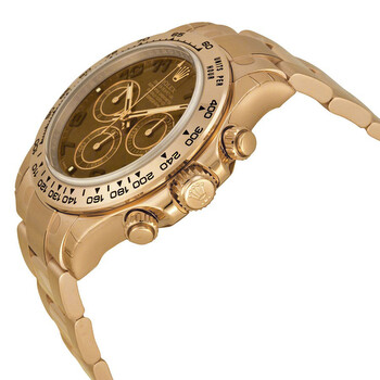 18kt everose gold case with a 18kt everose gold Rolex oyster bracelet. Fixed 18kt everose gold bezel. Chocolate dial with rose gold-tone hands and Arabic numeral hour markers. Minute markers around the outer rim. Dial Type: Analog. Luminescent hands and markers. Chronograph - three sub-dials displaying: 60 second, 30 minute and 12 hour. Rolex calibre 4130 automatic movement with a 72-hour power reserve. Scratch resistant sapphire crystal. Screw down crown. Solid case back. Case size: 40 mm. Round case shape. Oysterlock clasp. Water resistant at 100 meters / 330 feet. Functions: chronograph, hour, minute, second, chronometer. Luxury watch style. Watch label: Swiss Made. Item Variations: 116505-78595. Rolex Cosmograph Daytona Chocolate Dial 18K Everose Gold Rolex Oyster Automatic Men's Watch 116505CHAO.