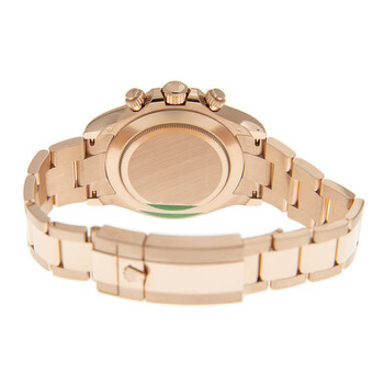 18kt everose gold case with a 18kt everose gold Rolex oyster bracelet. Fixed 18kt everose gold bezel showing tachymeter markings. Brown dial with luminous everose gold hands and index hour markers. Minute markers around the outer rim. Dial Type: Analog. Luminescent hands and markers. Chronograph - three sub-dials displaying: 60 second, 30 minute and 12 hour. Rolex calibre 4130 automatic movement, based upon Rolex 4030, containing 44 Jewels, bitting at 28800 vph, and has a power reserve of approximately 72 hours. Scratch resistant sapphire crystal. Screw down crown. Solid case back. Round case shape. Case size: 40 mm. Oysterlock clasp. Water resistant at 100 meters / 330 feet. Functions: chronograph, hour, minute, second, chronometer. Cosmograph Daytona Series. Luxury watch style. Watch label: Swiss Made. Item Variations: M116505-0013. Rolex Cosmograph Daytona Chronograph Automatic Chronometer Brown Dial Men's Watch 116505-0013.