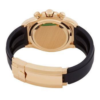18kt yellow gold case with a black rubber strap. Fixed tachymeter scale black cerachrom bezel. Gold dial with gold-tone hands and index hour markers. Minute markers around the outer rim. Dial Type: Analog. Luminescent hands and markers. Chronograph - three sub-dials displaying: 60 second, 30 minute and 12 hour. Rolex Calibre 4131 Automatic movement, based upon Rolex Calibre 4130, containing 47 Jewels, bitting at 28800 vph, and has a power reserve of approximately 72 hours. Scratch resistant sapphire crystal. Screw down crown. Solid case back. Round case shape, case size: 40 mm. Oysterlock clasp. Water resistant at 100 meters / 330 feet. Functions: chronograph, hour, minute, small second, chronometer. Cosmograph Daytona Series. Luxury watch style. Watch label: Swiss Made. Item Variations: M126518LN-0010. Rolex Cosmograph Daytona Chronograph Automatic Chronometer Gold Dial Men's Watch 126518LN-0010.