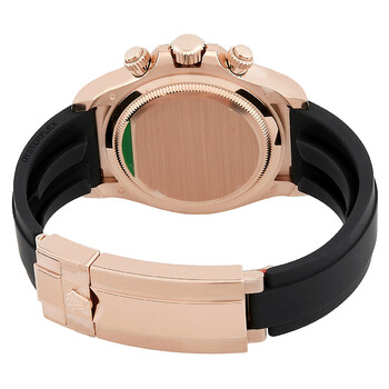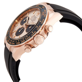 18 kt everose gold case with a black rubber strap. Fixed black cerachrom bezel. Sundust dial with rose gold-tone hands and index hour markers. Minute markers around the outer rim. Dial Type: Analog. Luminescent hands and markers. Chronograph - three sub-dials displaying: 60 second, 30 minute and 12 hour. Rolex Calibre 4131 Automatic movement, based upon Rolex Calibre 4130, containing 47 Jewels, bitting at 28800 vph, and has a power reserve of approximately 72 hours. Scratch resistant sapphire crystal. Screw down crown. Solid case back. Round case shape, case size: 40 mm. Oysterlock clasp. Water resistant at 100 meters / 330 feet. Functions: chronograph, hour, minute, small second, chronometer. Cosmograph Daytona Series. Luxury watch style. Watch label: Swiss Made. Item Variations: M126515LN-0006. Rolex Cosmograph Daytona Chronograph Automatic Chronometer Sundust Dial Men's Watch 126515LN-0006.