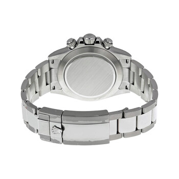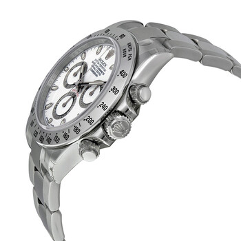 Stainless steel case with a stainless steel rolex oyster bracelet. Fixed - stainless steel (tachymeter engraved) bezel. White dial with silver-tone hands and index hour markers. Minute markers around the outer rim. Dial Type: Analog. Luminescent hands and dial markers. Chronograph - three sub-dials displaying: 60 second, 30 minute and 12 hour. Automatic movement. Scratch resistant sapphire crystal. Screw down crown. Case diameter: 40 mm. Round case shape. Deployment clasp. Water resistant at 100 meters / 330 feet. Functions: chronograph, hour, minute, second. Sport watch style. Watch label: Swiss Made. Item Variations: 116520, Rolex-116520 116520, 116520-WSO, Rolex-116520, Rolex-116520-WSO. Rolex Cosmograph Daytona White Dial Stainless Steel Rolex Oyster Automatic Men's Watch 116520WSO.