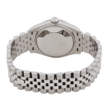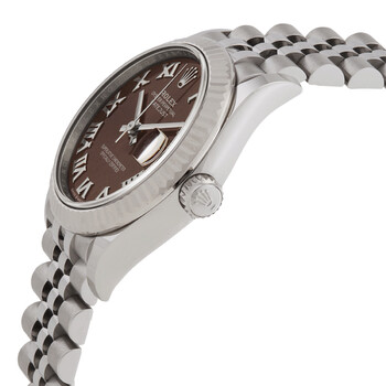 Silver-tone oystersteel case with a silver-tone stainless steel bracelet. Fixed fluted silver-tone white gold bezel. Rhodium dial with silver-tone hands and Roman numeral hour markers. Dial Type: Analog. Date display at the 3 o'clock position. Rolex Calibre 2236 Automatic movement, based upon Rolex 2235, containing 31 Jewels, bitting at 28800 vph, and has a power reserve of approximately 55 hours. Scratch resistant sapphire crystal. Screw down crown. Solid case back. Round case shape, case size: 31 mm. Fold over clasp. Water resistant at 100 meters / 330 feet. Functions: date, hour, minute, second, chronometer. Datejust 31 Series. Luxury watch style. Watch label: Swiss Made. Rolex Datejust 31 Automatic Chronometer Ladies Watch 278274RRJ.