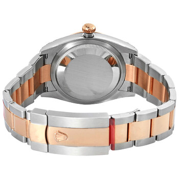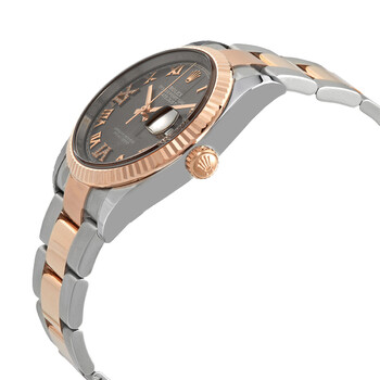 Stainless steel case with a stainless steel oyster bracelet with 18k everose gold center links. Fixed fluted 18kt everose gold bezel. Grey dial with 18k everose gold hands and Arabic numeral hour markers. Diamond-set Roman numeral appear at the 6 and 9 o'clock positions. Minute markers around the outer rim. Dial Type: Analog. Date display at the 3 o'clock position. Rolex calibre 3235 automatic movement, based upon Rolex 3035, containing 31 Jewels, bitting at 28800 vph, and has a power reserve of approximately 70 hours. Scratch resistant sapphire crystal. Screw down crown. Screw down case back. Round case shape. Case size: 36 mm. Folding clasp (with 5 mm comfort extension link). Water resistant at 100 meters / 330 feet. Functions: date, hour, minute, second, chronometer. Datejust 31 Series. Luxury watch style. Watch label: Swiss Made. Rolex Datejust 31 Automatic Diamond Grey Dial Watch 126231GYRDO.