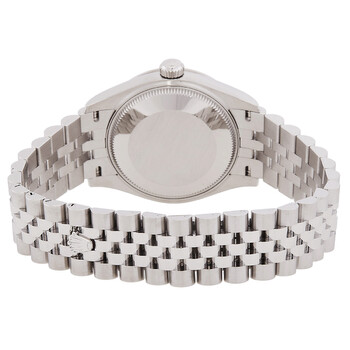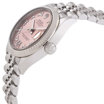 Silver-tone stainless steel case with a silver-tone stainless steel rolex jubilee bracelet. Fixed 18k white gold bezel. Pink dial with silver-tone hands and Roman- diamond numeral hour markers. Dial Type: Analog. Date display at the 3 o'clock position. Rolex Calibre 2236 Automatic movement, based upon Rolex 2235, containing 31 Jewels, bitting at 28800 vph, and has a power reserve of approximately 55 hours. Scratch resistant sapphire crystal. Screw down crown. Solid case back. Round case shape, case size: 31 mm. Fold over clasp with a safety release. Water resistant at 100 meters / 330 feet. Functions: date, hour, minute, second. Datejust Series. Dress watch style. Watch label: Swiss Made. Rolex Datejust 31 Automatic Diamond Pink Dial Ladies Watch 278274PRDJ.