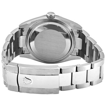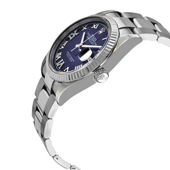 Stainless steel and 18k white gold case with a silver-tone stainless steel rolex oyster bracelet. Fixed fluted stainless steel and 18kt white gold fluted bezel bezel. Aubergine dial with silver-tone hands and Roman numeral hour markers. Minute markers around the outer rim. Dial Type: Analog. Date display at the 3 o'clock position. Rolex Calibre 3235 automatic movement with a 70-hour power reserve. Scratch resistant sapphire crystal. Screw down crown. Solid case back. Round case shape. Case size: 36 mm. Oyster clasp. Water resistant at 100 meters / 330 feet. Functions: date, hour, minute, second, chronometer. Luxury watch style. Watch label: Swiss Made. Rolex Datejust 36 Aubergine Sunburst Automatic Ladies Watch 126234-0022.