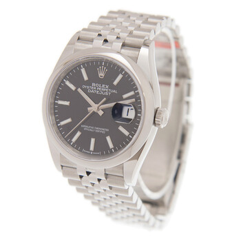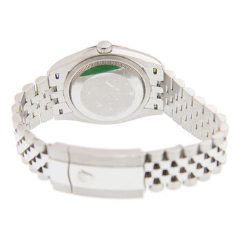 Stainless steel case with a stainless steel Rolex jubilee bracelet. Fixed domed stainless steel bezel. Black dial with luminous silver-tone hands and index hour markers. Minute markers around the outer rim. Dial Type: Analog. Luminescent hands and markers. Date display at the 3 o'clock position. Rolex calibre 3235 automatic movement, based upon Rolex 3035, containing 31 Jewels, bitting at 28800 vph, and has a power reserve of approximately 70 hours. Scratch resistant sapphire crystal. Screw down crown. Solid case back. Round case shape. Case size: 36 mm. Fold over oyster clasp. Water resistant at 100 meters / 330 feet. Functions: date, hour, minute, second, chronometer. Datejust 36 Series. Luxury watch style. Watch label: Swiss Made. Rolex Datejust 36 Automatic Black Dial Men's Jubilee Watch 126200BKSJ.