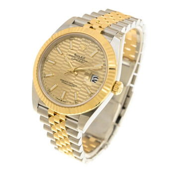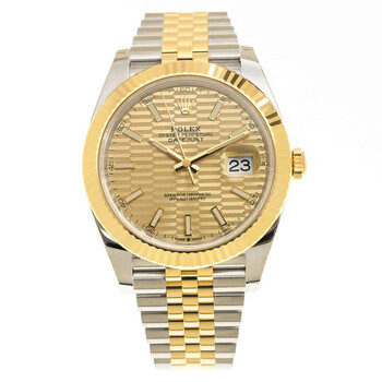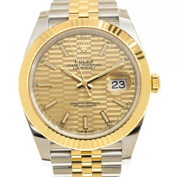 Stainless steel & 18k yellow gold case with a stainless steel jubilee & 18k yellow gold bracelet. Fluted 18k yellow gold bezel. Champagne dial with 18k yellow gold hands and index hour markers. Dial Type: Analog. Luminescent hands and markers. Date display at the 3 o'clock position. Rolex Calibre 3235 Automatic movement, based upon Rolex 3035, containing 31 Jewels, bitting at 28800 vph, and has a power reserve of approximately 70 hours. Scratch resistant sapphire crystal. Screw down crown. Screw down case back. Round case shape, case size: 36 mm. Folding with 5 mm comfort extension link clasp. Water resistant at 100 meters / 330 feet. Functions: date, hour, minute, second, chronometer. Datejust 36 Series. Luxury watch style. Watch label: Swiss Made. Rolex Datejust 36 Automatic Champagne Dial Chronometer Watch 126233CFSJ.