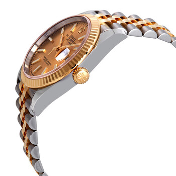 Stainless steel case with a stainless steel Rolex jubilee bracelet with 18kt yellow gold center links. Fixed fluted 18kt yellow gold bezel. Champagne dial with yellow gold-tone hands and index hour markers. Dial Type: Analog. Luminescent hands and markers. Date display at the 3 o'clock position. Rolex calibre 3235 automatic movement, based upon Rolex 3035, containing 31 Jewels, bitting at 28800 vph, and has a power reserve of approximately 70 hours. Scratch resistant sapphire crystal. Screw down crown. Solid case back. Round case shape. Case size: 36 mm. Oyster clasp. Water resistant at 100 meters / 330 feet. Functions: date, hour, minute, second, chronometer. Luxury watch style. Watch label: Swiss Made. Rolex Datejust 36 Automatic Champagne Dial Men's Steel and 18K Yellow Gold Jubilee Watch 126233CSJ.
