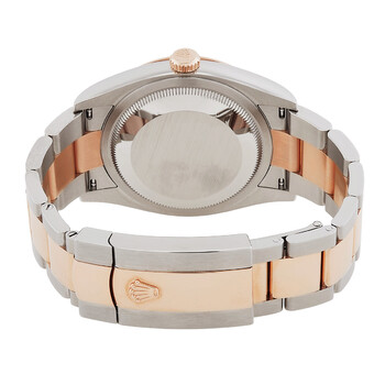 Stainless steel & 18k everose gold case with a stainless steel oyster & 18k everose gold bracelet. Domed 18k everose gold bezel. Silver motif dial with 18k everose gold hands and index hour markers. Dial Type: Analog. Luminescent hands and markers. Date display at the 3 o'clock position. Rolex Calibre 3235 Automatic movement, based upon Rolex 3035, containing 31 Jewels, bitting at 28800 vph, and has a power reserve of approximately 70 hours. Scratch resistant sapphire crystal. Screw down crown. Screw down case back. Round case shape, case size: 36 mm. Folding with 5 mm comfort extension link clasp. Water resistant at 100 meters / 330 feet. Functions: date, hour, minute, second, chronometer. Datejust 36 Series. Luxury watch style. Watch label: Swiss Made. Rolex Datejust 36 Automatic Chronometer Watch 126201SSO.