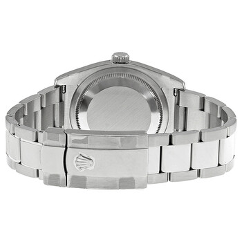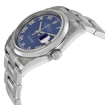 Stainless steel case with a stainless steel Rolex oyster bracelet. Fixed domed stainless steel bezel. Blue dial with silver-tone hands and Roman numeral hour markers. Minute markers around the outer rim. Dial Type: Analog. Date display at the 3 o'clock position. Rolex calibre 3135 automatic movement with a 50-hour power reserve. Scratch resistant sapphire crystal. Screw down crown. Solid case back. Case size: 36 mm. Round case shape. Oysterlock clasp. Water resistant at 100 meters / 330 feet. Functions: date, hour, minute, second. Luxury watch style. Watch label: Swiss Made. Item Variations: 116200, 116200-BLRO, Rolex-116200, Rolex-116200-BLRO. Rolex Datejust 36 Blue Dial Stainless Steel Rolex Oyster Automatic Men's Watch 116200BLRO.