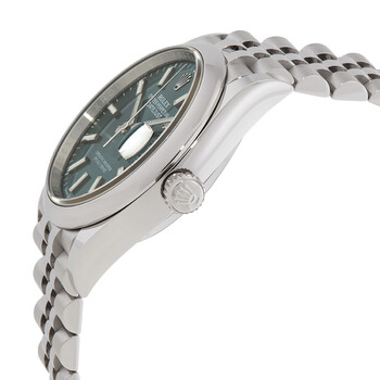 Silver-tone stainless steel case with a silver-tone stainless steel rolex jubilee bracelet. Fixed, smooth stainless steel bezel. Mint green dial with silver-tone hands and index hour markers. Dial Type: Analog. Luminescent hands and markers. Date display at the 3 o'clock position. Rolex Calibre 3235 Automatic movement, based upon Rolex 3035, containing 31 Jewels, bitting at 28800 vph, and has a power reserve of approximately 70 hours. Scratch resistant sapphire crystal. Screw down crown. Solid case back. Round case shape, case size: 36 mm. Folding oyster clasp. Water resistant at 100 meters / 330 feet. Functions: date, hour, minute, second. Datejust 36 Series. Luxury watch style. Watch label: Swiss Made. Rolex Datejust 36 Mint Green Dial Automatic Men's Stainless Steel Jubilee Watch M126200-0023.