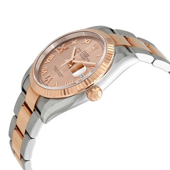 Stainless steel and 18kt everose gold case with a stainless steel and 18kt everose gold oyster bracelet. Fixed- fluted bezel. Pink dial with everose gold hands and Roman numeral hour markers. Dial Type: Analog. Date display at the 3 o'clock position. Rolex Calibre 3235 automatic movement with a 70-hour power reserve. Scratch resistant sapphire crystal. Screw down crown. Solid case back. Round case shape. Case size: 36 mm. Water resistant at 100 meters / 330 feet. Functions: date, hour, minute, second. Luxury watch style. Watch label: Swiss Made. Rolex Datejust 36 Pink Diamond Dial Men's Steel and 18kt Everose Gold Oyster Watch 126231PKRDO.