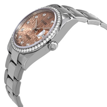 Stainless steel case with a stainless steel rolex oyster bracelet. Fixed stainless steel bezel set with diamonds. Pink jubilee dial with silver-tone hands and diamond hour markers. Dial Type: Analog. Date display at the 3 o'clock position. Rolex Calibre 3235 Automatic movement, based upon Rolex 3035, containing 31 Jewels, bitting at 28800 vph, and has a power reserve of approximately 70 hours. Scratch resistant sapphire crystal. Screw down crown. Solid case back. Round case shape. Case size: 36 mm. Fold over clasp. Water resistant at 100 meters / 330 feet. Functions: date, hour, minute, second. Datejust 36 Series. Luxury watch style. Watch label: Swiss Made. Rolex Datejust 36 Pink Jubilee Diamond Dial Automatic Unisex Oyster Watch 126284PJDO.