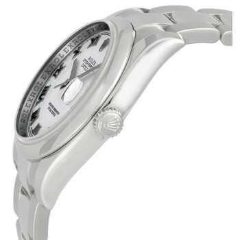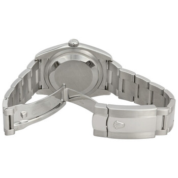 Stainless steel case with a stainless steel Rolex oyster bracelet. Fixed domed stainless steel bezel. Rhodium dial with silver-tone hands and Roman numeral hour markers. Minute markers around the outer rim. Dial Type: Analog. Date display at the 3 o'clock position. Automatic movement with a 50-hour power reserve. Scratch resistant sapphire crystal. Screw down crown. Solid case back. Case diameter: 36 mm. Round case shape. Oysterclasp clasp. Water resistant at 100 meters / 330 feet. Functions: date, hour, minute, second. Luxury watch style. Watch label: Swiss Made. Item Variations: 116200, 116200-SRO, Rolex-116200, Rolex-116200-SRO. Rolex Datejust 36 Rhodium Dial Stainless Steel Rolex Oyster Automatic Men's Watch 116200RRO.