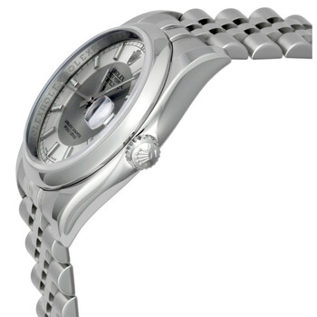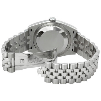 Stainless steel case with a stainless steel rolex jubilee bracelet. Fixed - domed stainless steel bezel. Silver dial with silver-tone hands and luminous stick hour markers. Minute markers around the outer rim. Dial Type: Analog. Luminescent hands and dial markers. Date display at the 3 o'clock position. Automatic movement. Scratch resistant sapphire crystal. Case diameter: 36 mm. Round case shape. Water resistant at 100 meters / 330 feet. Functions: date, hour, minute, second. Additional Info: chronometer, date displays at 3 o'clock position. Luxury watch style. Watch label: Swiss Made. Rolex Datejust 36 Silver Dial Stainless Steel Rolex Jubilee Automatic Men's Watch 116200SRSJ.