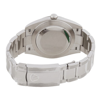 Silver-tone stainless steel case with a silver-tone stainless steel oyster bracelet. Fixed stainless steel bezel. Bright blue fluted motif dial with silver-tone hands and index hour markers. Dial Type: Analog. Luminescent hands and markers. Date display at the 3 o'clock position. Rolex Calibre 3235 Automatic movement, based upon Rolex 3035, containing 31 Jewels, bitting at 28800 vph, and has a power reserve of approximately 70 hours. Scratch resistant sapphire crystal. Screw down crown. Solid case back. Round case shape, case size: 41 mm. Folding oyster clasp. Water resistant at 100 meters / 330 feet. Functions: date, hour, minute, second. Datejust 41 Series. Luxury watch style. Watch label: Swiss Made. Rolex Datejust 41 Bright Blue Fluted Motif Dial Automatic Men's Oyster Watch M126300-0023.