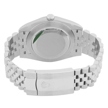 Silver-tone stainless steel case with a silver-tone stainless steel jubilee bracelet. Fixed stainless steel bezel. Mint green dial with silver-tone hands and index hour markers. Dial Type: Analog. Luminescent hands and markers. Date display at the 3 o'clock position. Rolex Calibre 3235 Automatic movement, based upon Rolex 3035, containing 31 Jewels, bitting at 28800 vph, and has a power reserve of approximately 70 hours. Scratch resistant sapphire crystal. Screw down crown. Solid case back. Round case shape, case size: 41 mm. Folding oyster clasp. Water resistant at 100 meters / 330 feet. Functions: date, hour, minute, second. Datejust 41 Series. Luxury watch style. Watch label: Swiss Made. Rolex Datejust 41 Mint Green Dial Automatic Men's Jubilee Watch M126300-0020.