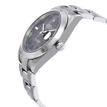 Stainless steel case with a stainless steel Rolex oyster bracelet. Fixed smooth stainless steel bezel. Slate dial with luminous silver-tone hands and Roman numeral hour markers. Minute scale around the inner rim. Dial Type: Analog. Date display at the 3 o'clock position. Rolex calibre 3235 automatic movement with a 70-hour power reserve. Scratch resistant sapphire crystal. Screw down crown. Solid case back. Round case shape. Case size: 41 mm. Water resistant at 100 meters / 330 feet. Functions: date, hour, minute, second. Luxury watch style. Watch label: Swiss Made. Rolex Datejust 41 Salte Dial Automatic Men's Oyster Watch 126300GYRJ.